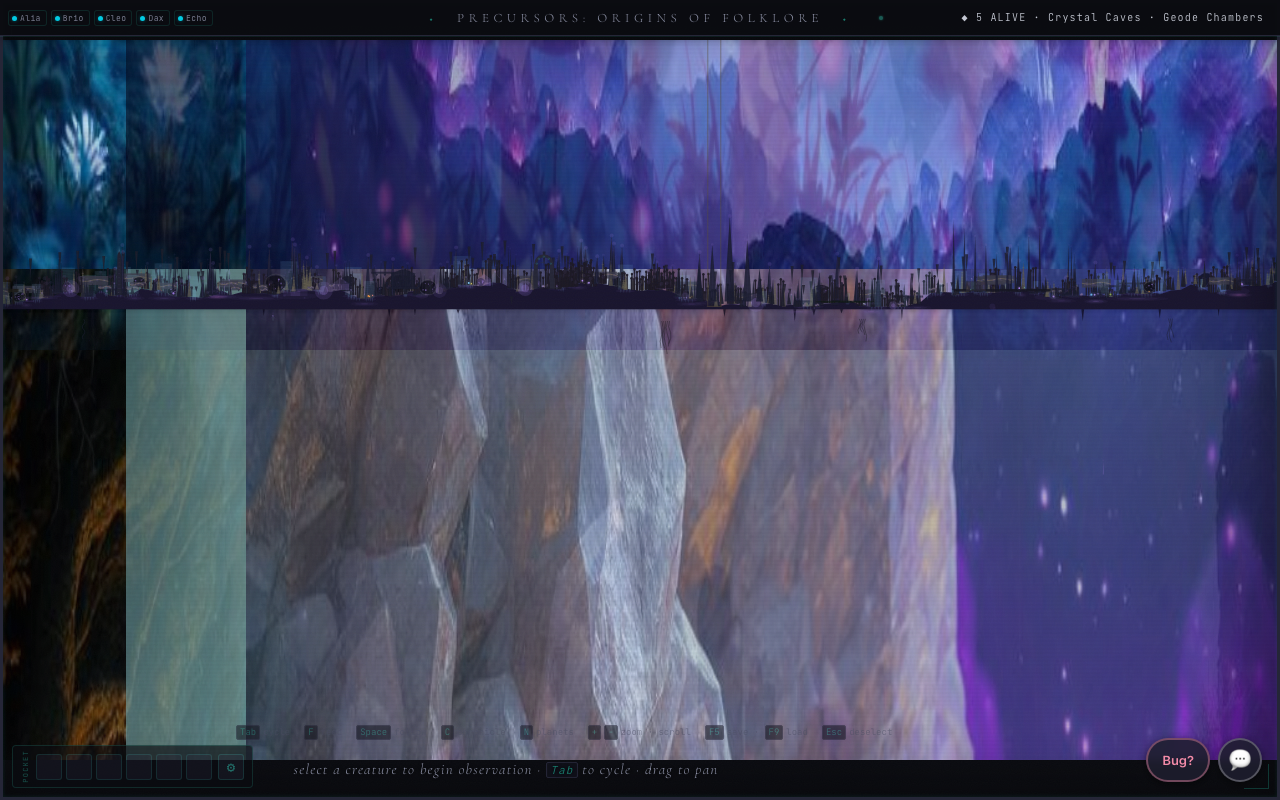 The artificial life genre pioneered in the 1990s was decades ahead of its time. Precursors is a spiritual successor that takes the concept to its logical conclusion: LLM cognition as the engine of artificial life.